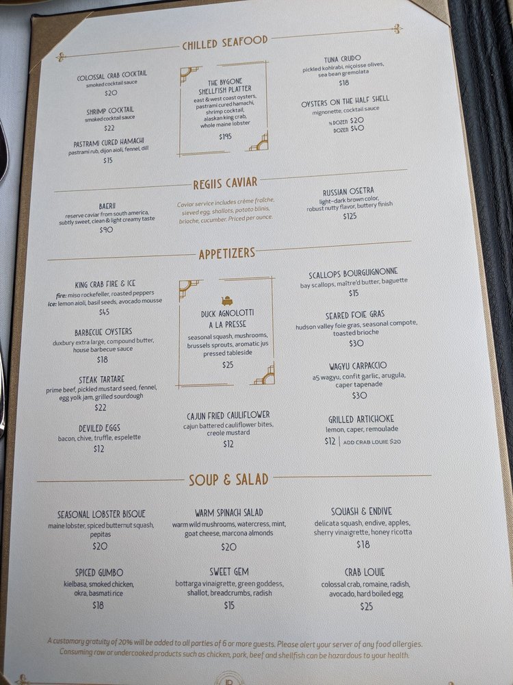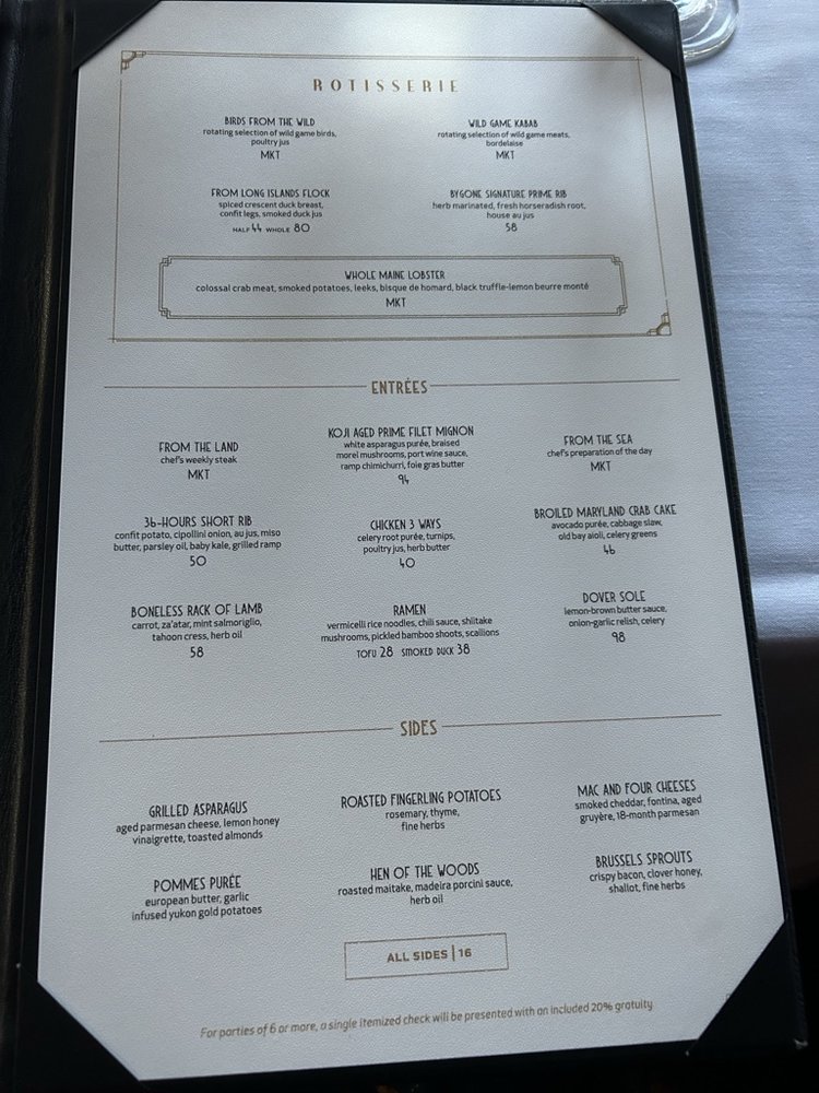 colossal crab meat, roasted peewee potatoes, leeks, bisque d'homard, black truffle-lemon beurre monté